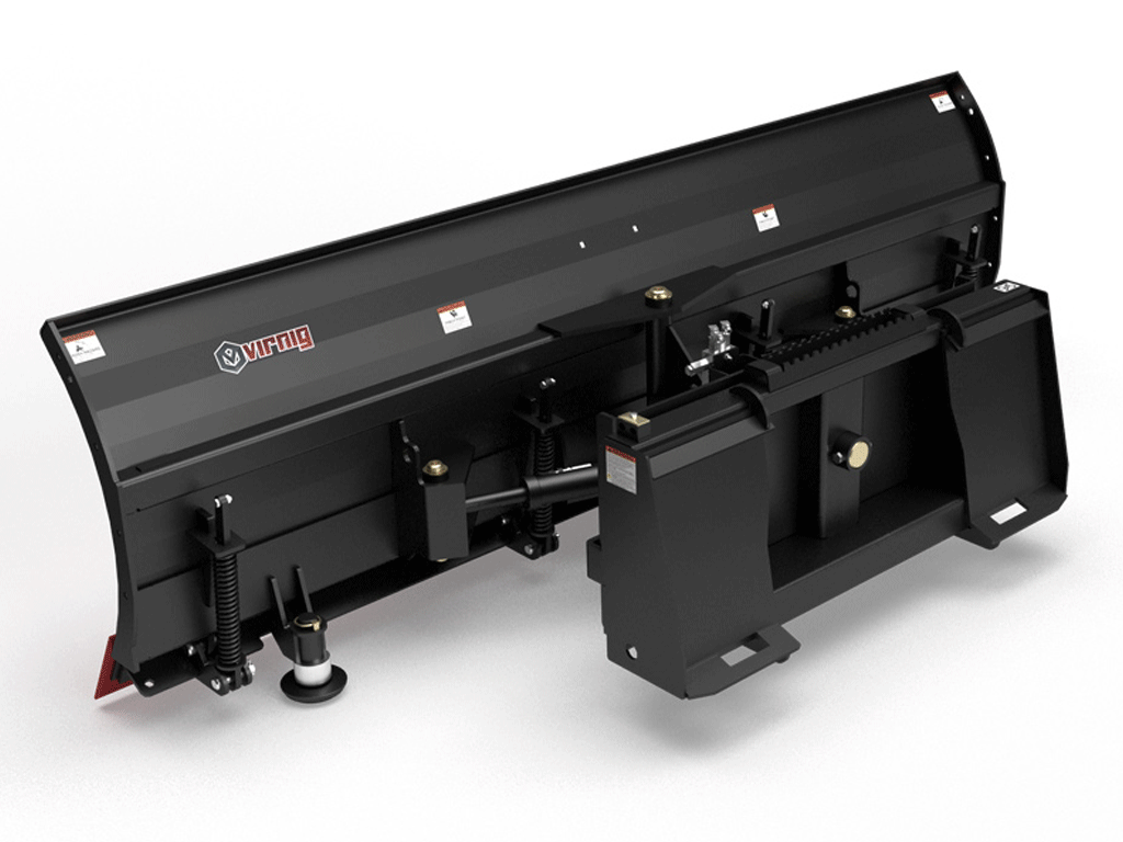 The Virnig V60 Angle Snow Blade is a premium skid steer attachment engineered for fast, efficient, and reliable snow removal. Designed for demanding winter conditions, this hydraulic snow blade angles 30° left or right directly from the cab, allowing operators to clear and windrow snow with precision. Its 4° side-to-side oscillation follows uneven surfaces for a cleaner finish, while the trip edge system protects both the operator and machine from impact. The trip edge protects the operator and the equipment.