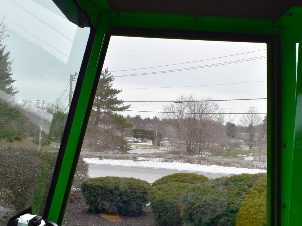 Plus Cab models feature upgraded framed clear vinyl doors. This traditional rear-hinged door design provides an improved weather seal in cold or windy conditions, exceptional side visibility, and locks for added security. The Plus Cab is designed as a mid-point option for the customer who needs more weather protection than the Base Cab offers, prefers excellent side visibility, but does not need the maximum weather protection offered by steel doors with glass windows featured in our Advantage Cabs.