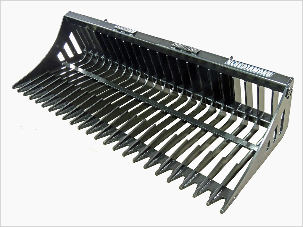 The extreme duty rock bucket is one of the heaviest rock buckets available. With the increased HP and size of many new skid steers and compact track loaders, this rock bucket has become very popular. The 1/2″ tines will stand up to the abuse of the largest machines and the closed in quick attach area protects the operator by keeping debris from coming back through the quick attach.