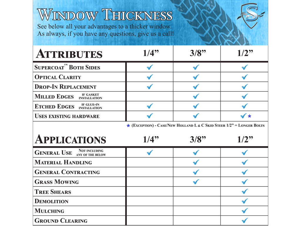 Replacing factory glass with SHIELDS® SUPERCOATED™ polycarbonate provides unmatched advantages in demanding skid steer and forestry applications: