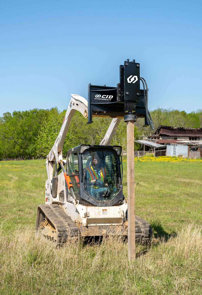 The CID X-Treme Post Driver is a dependable post driving attachment for operators looking to get the job completed in a timely manner for an excellent cost. These breaker style post drivers use a proven nitrogen charged power cell, steel plate frame, and high strength steel domed head to put posts in the ground in a fraction of the time it takes to set posts with a conventional post hole digger. Offered in the skid steer or excavator mounts, ready to go when received.