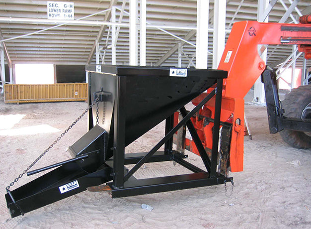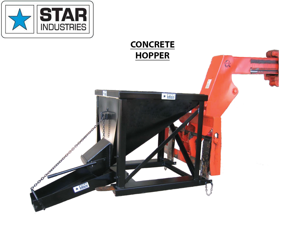 Save the extra cost of a concrete pump or crane and use your extendable forklift with a Star Industries concrete hopper. It’s the perfect solution to place concrete in hard to reach places and the ¾ cuyd capacity allows for plenty of concrete to be placed at once.