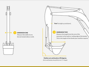 ⚠ Pro Tip! If your excavator is equipped with a Pin-Grabber quick coupler, choose a longer thumb to ensure a suitable fit with your bucket.