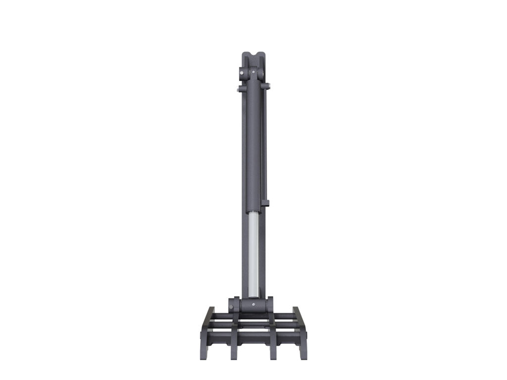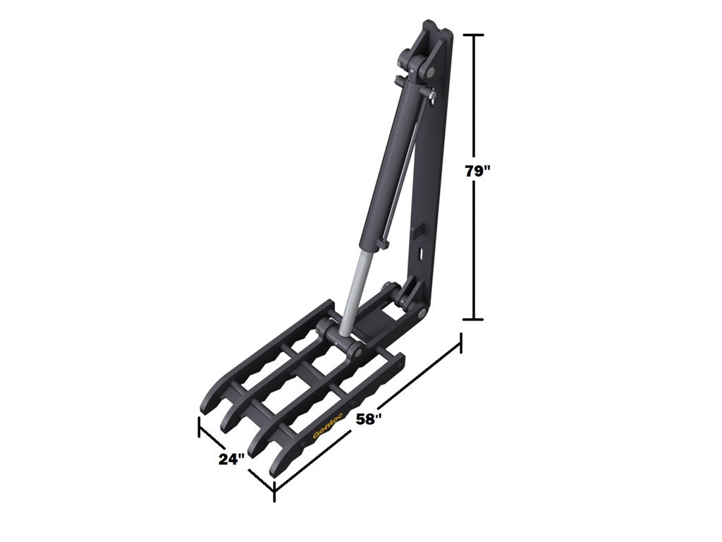 Experience superior geometry with the HT2458. The thumb boasts a maximum extension angle of 113 degrees. Designed to minimize stowed dimensions, when fully retracted, the tines only extend 22" away from the edge of the excavator stick – meaning it won't get in your way when digging. The backplate measures 78 5/8”, and the hydraulic cylinder is included. The port size on the cylinder is larger to allow for faster cycling.