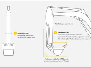 ⚠ Pro Tip! If your excavator is equipped with a Pin-Grabber quick coupler, choose a longer thumb to ensure a suitable fit with your bucket.