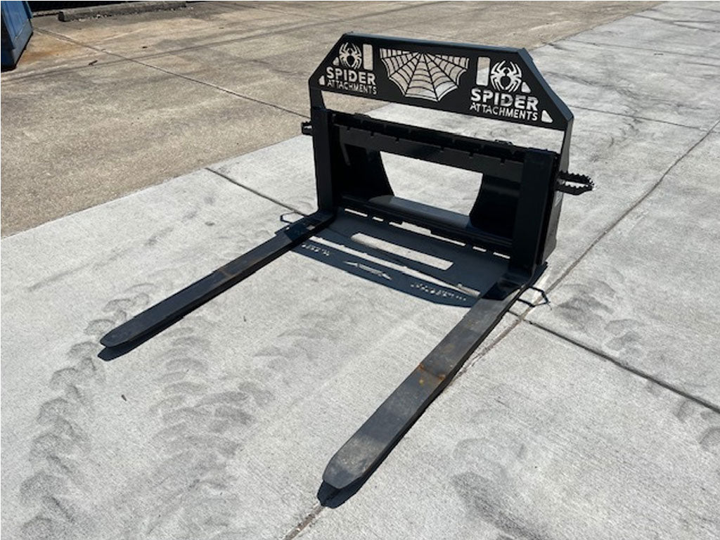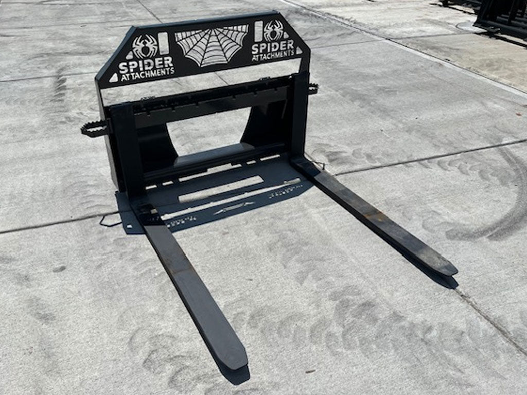 Tailored for the most rigorous applications, including construction mega-projects, industrial warehouses, and heavy agricultural operations, our Spider Attachments Heavy Duty Skid Steer Pallet Forks redefine the capabilities of your loader. Elevate productivity, minimize manual labor, and optimize your operations with these dependable, heavy duty pallet forks.
