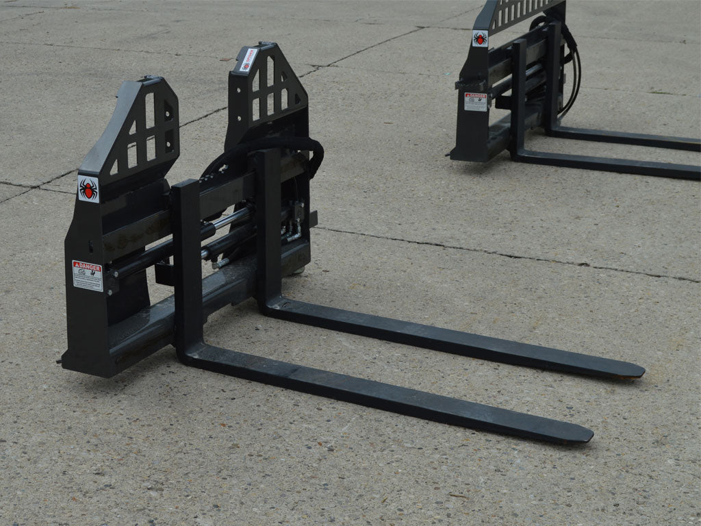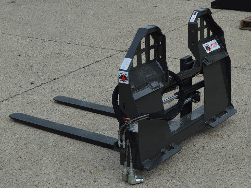 Spider Attachments Hydraulic Pallet Forks for Skid Steer Loaders are a specialized and innovative attachment designed to enhance the material handling capabilities of your skid steer loader. These hydraulic pallet forks provide versatility, control, and efficiency, making them a valuable addition to various industries and applications. Here are some key features and benefits of Spider Attachments Hydraulic Pallet Forks for Skid Steer Loaders: