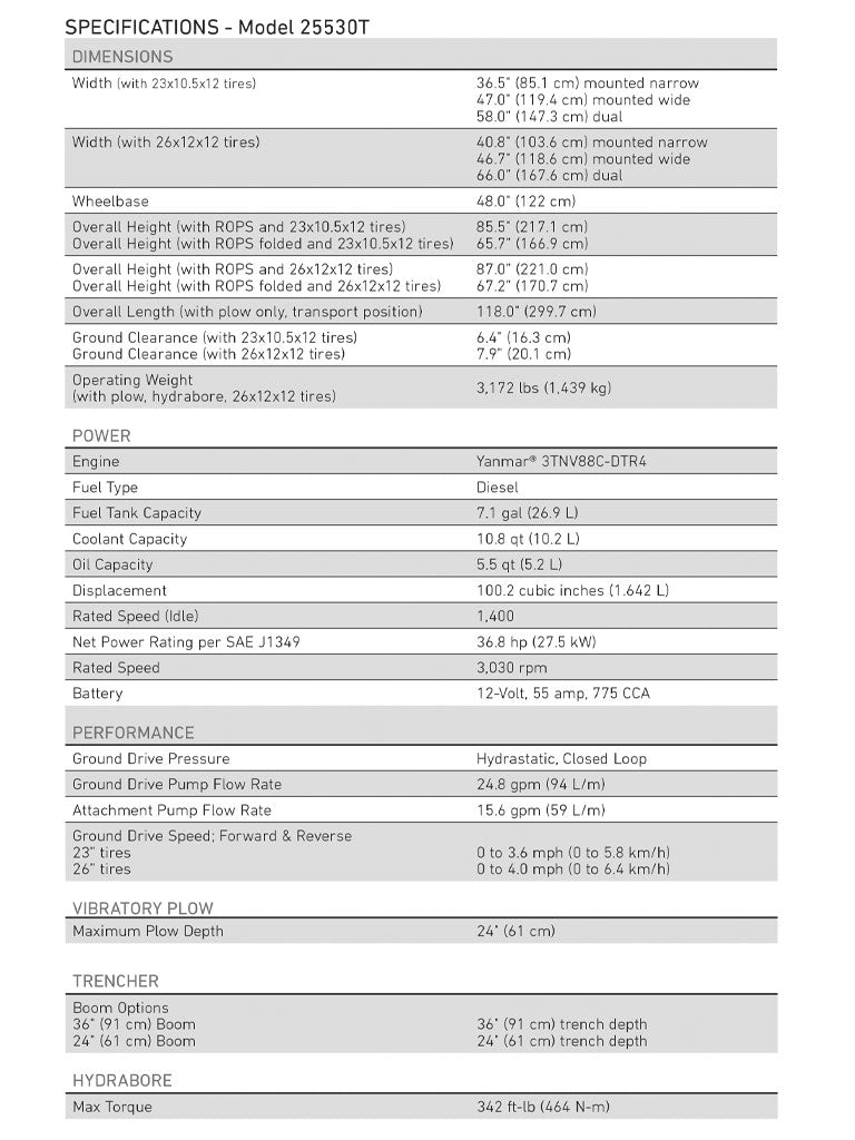 • Toro Maxi Sneaker 370 25545T 26" tires, vibratory plow, hydra-borer