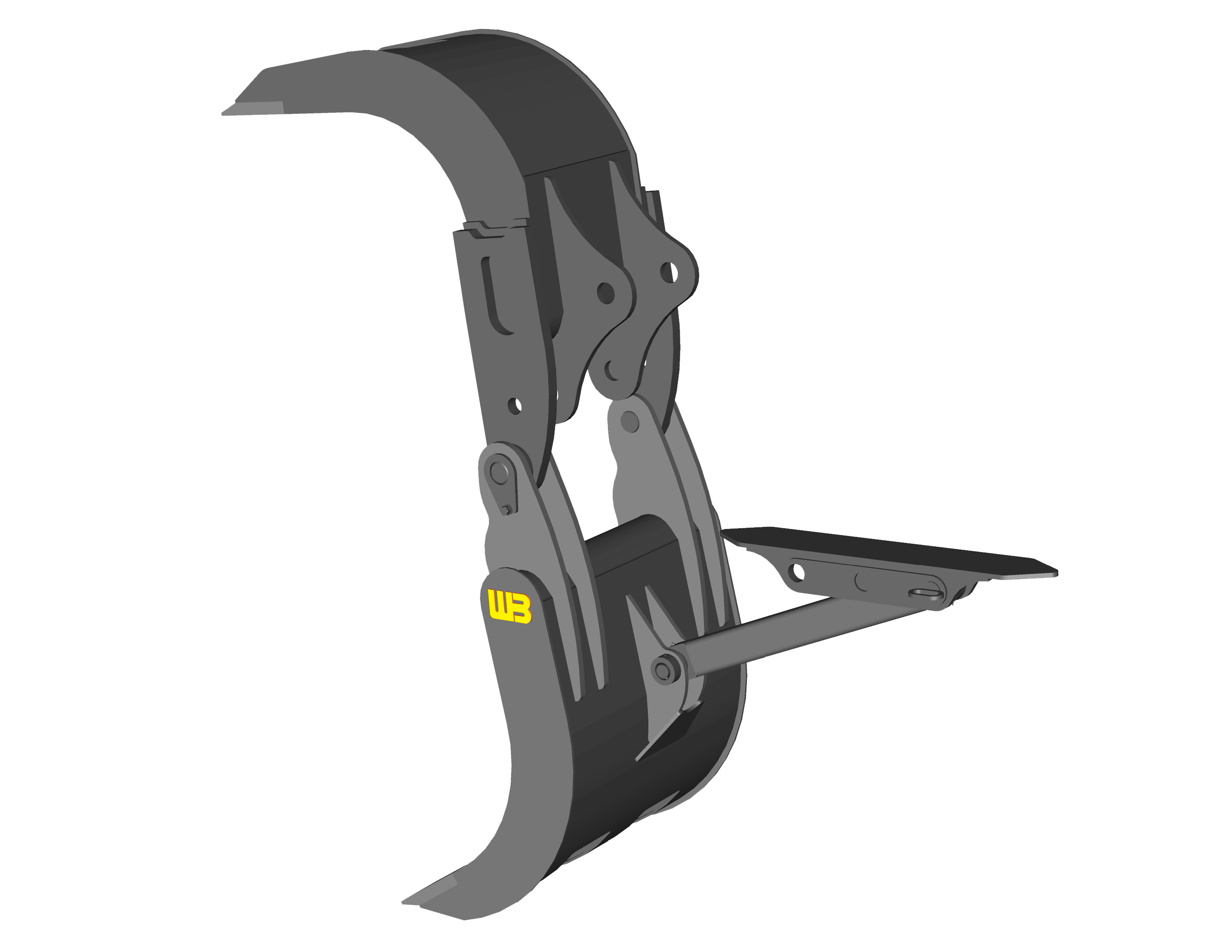 Werk-Brau's wide mouth box style grapple is specifically designed to handle various objects of different sizes such as brush, rocks, and demolition debris. Single grapples may be used with a bucket. Dual grapple styles are also available. Not designed for digging or prying.
