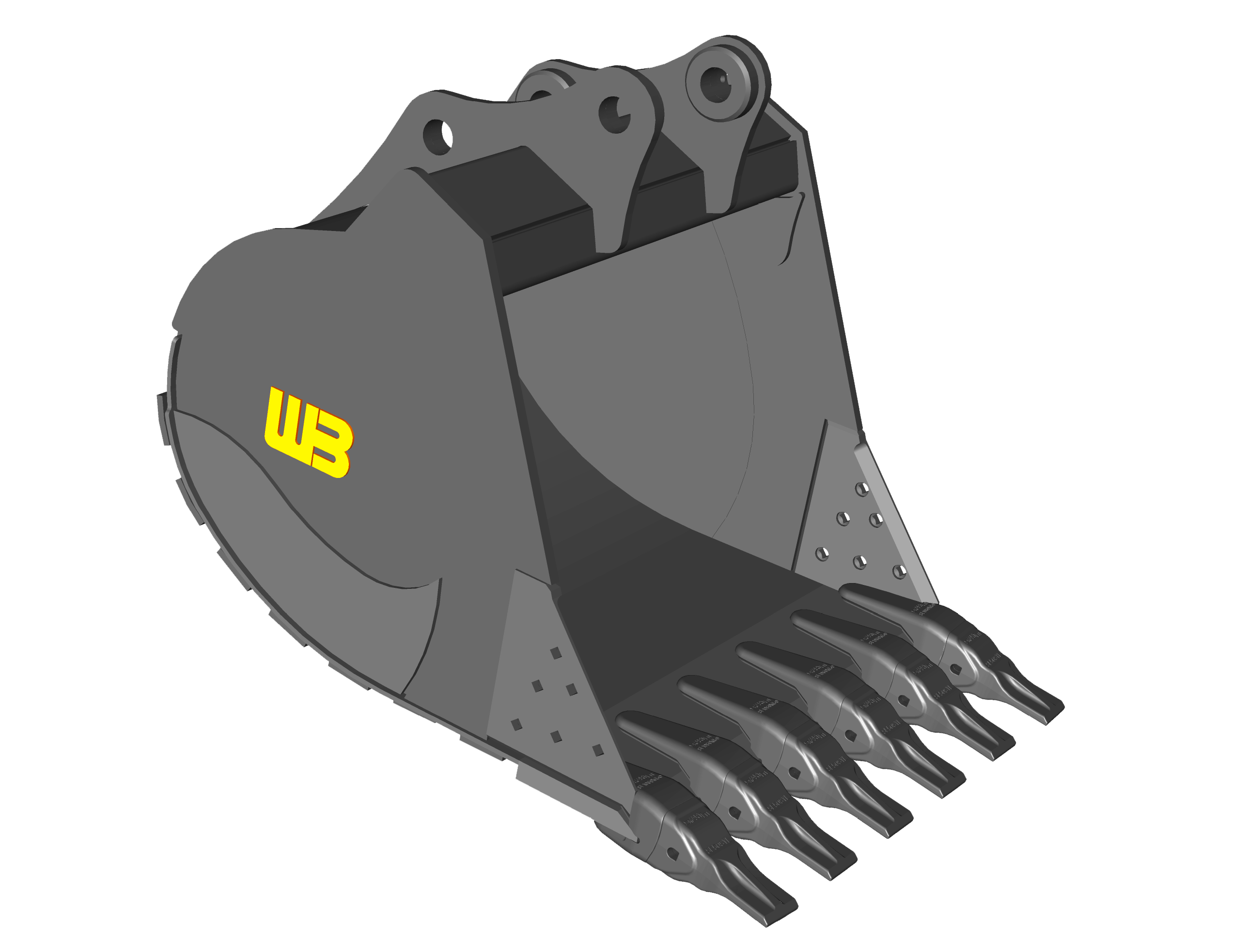 Specifically designed for tough clay or dirt with rock scattered through the soil. Werk-Brau does not recommend using this bucket for prying required to dig solid rock. For extreme digging conditions see the 'Severe Duty Bucket', ‘Extreme Duty Bucket’ and 'V-Line Strata Rock Bucket'.
